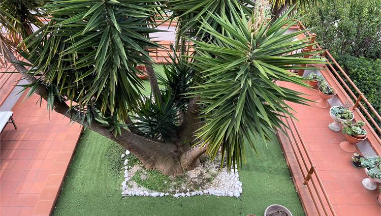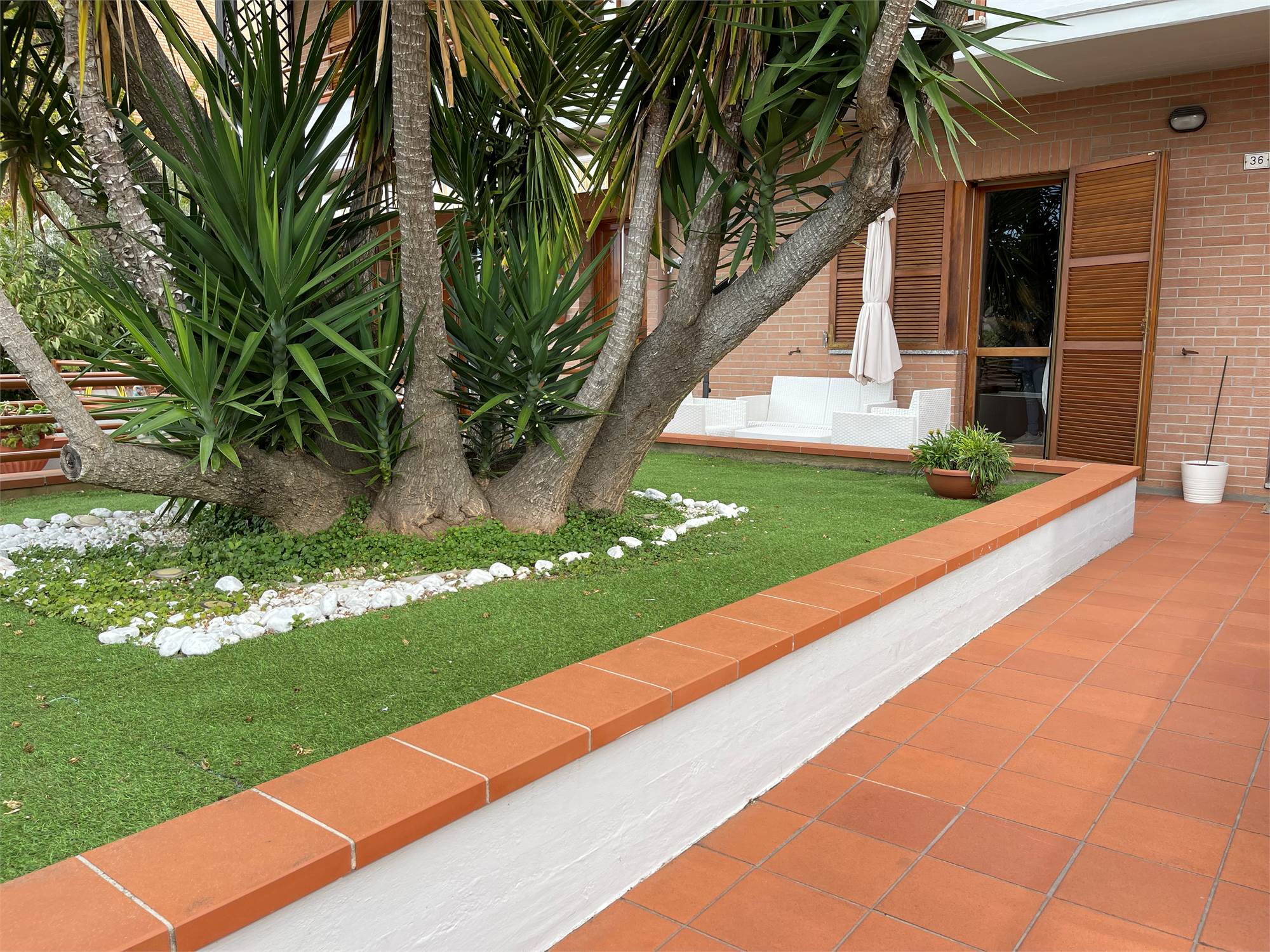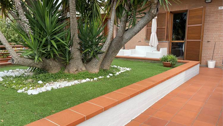 All' ingresso del vialetto, che conduce alla porta d'ingresso ti accoglie una bella palma al centro di una grande aiuola.