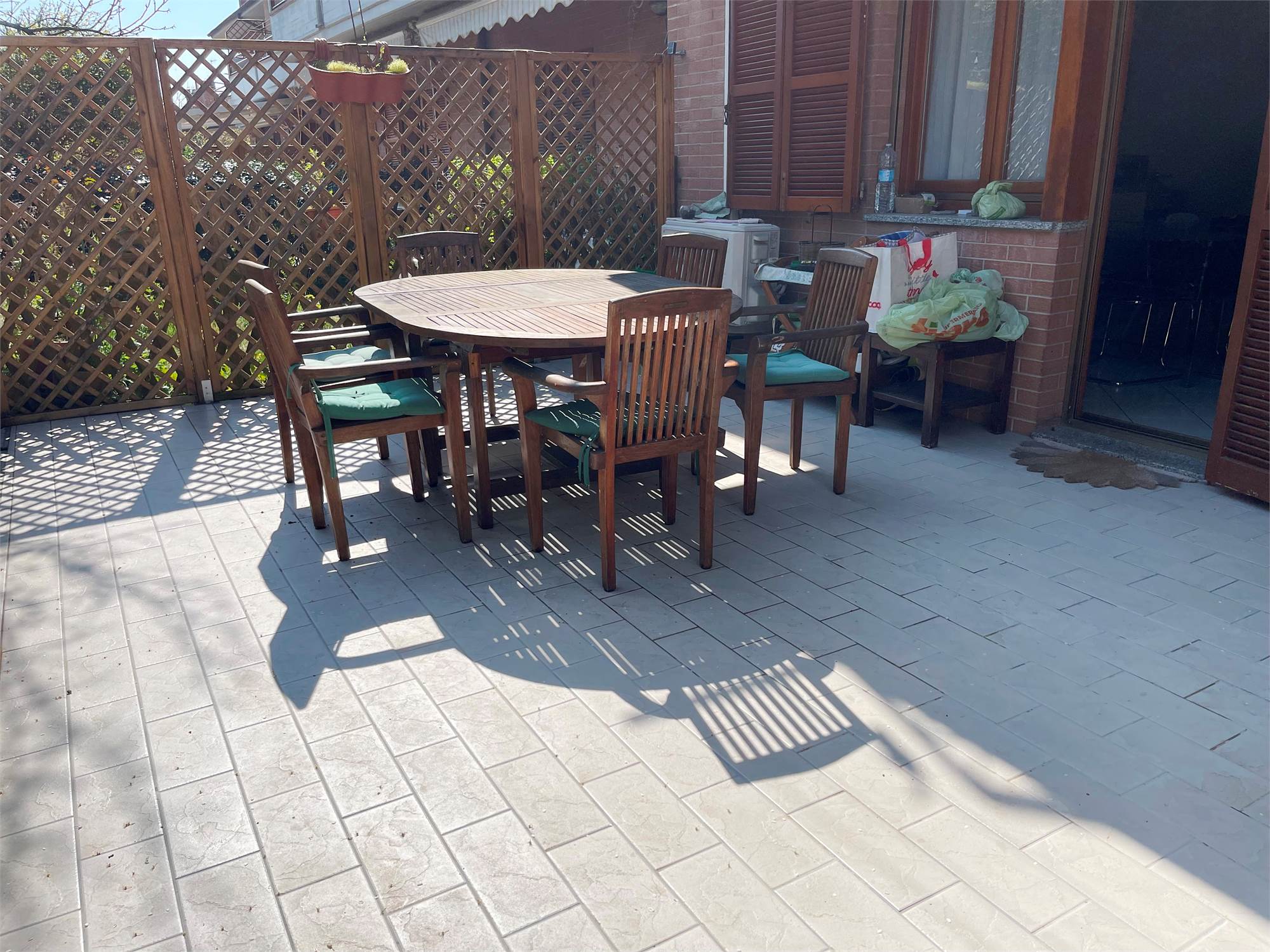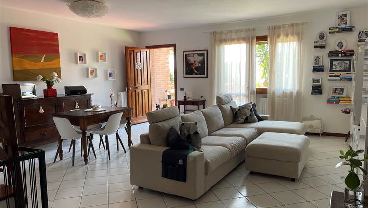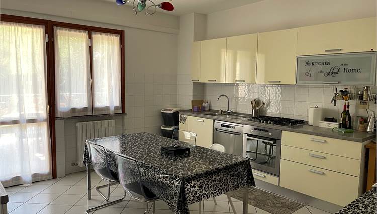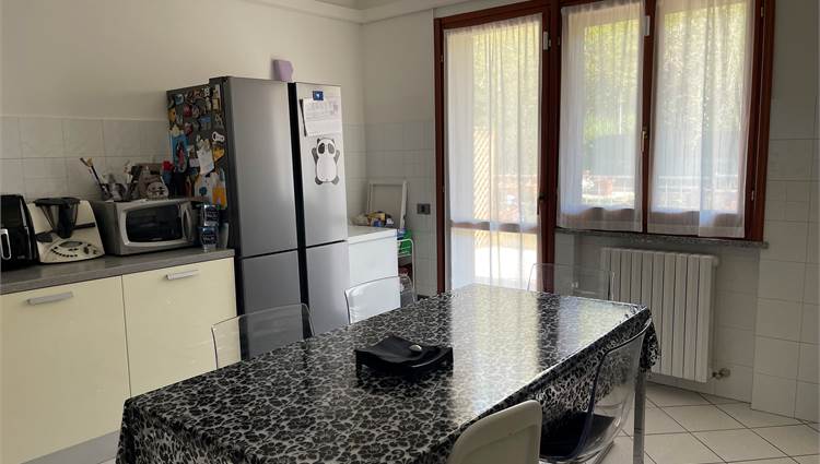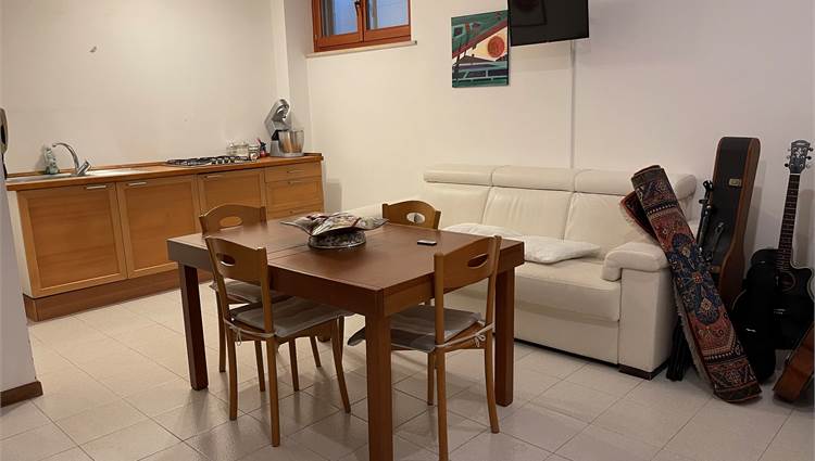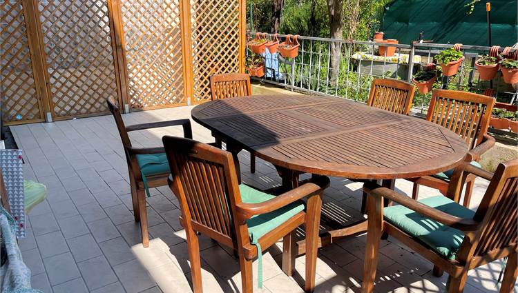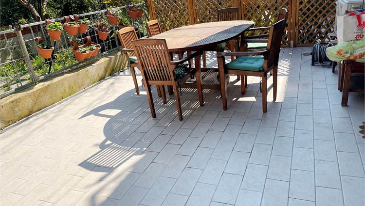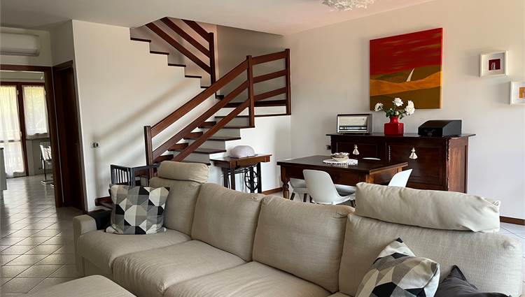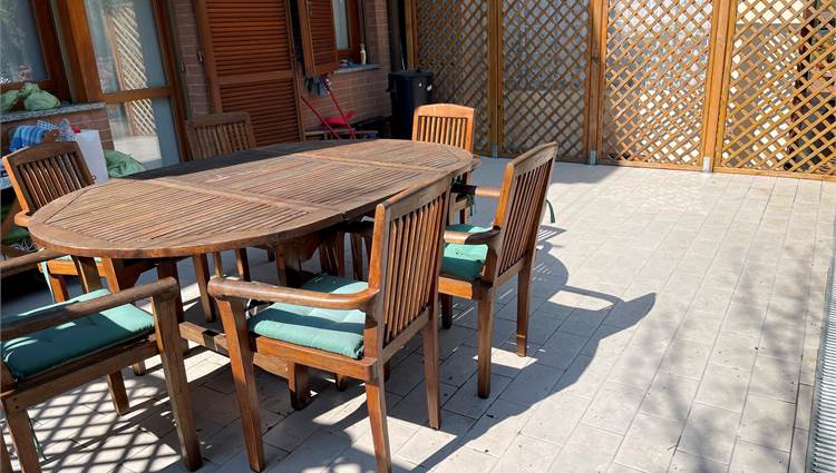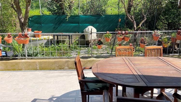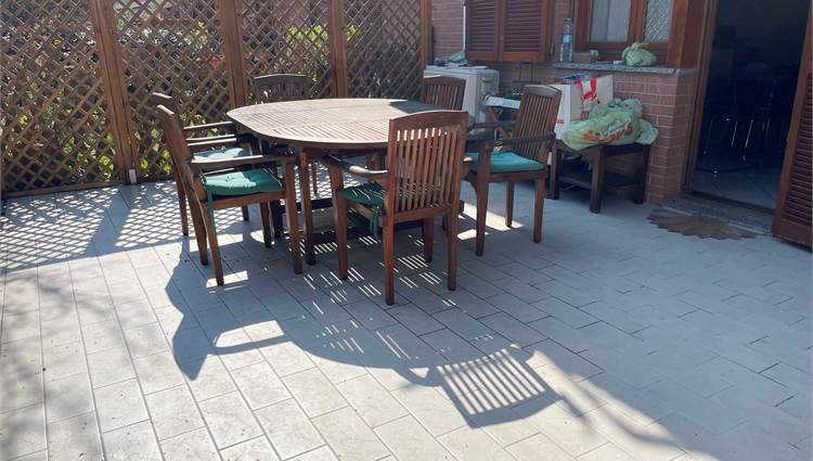 Ampio salone, collegato alla grande cucina con accesso alla corte pavimentata attrezzata dove trascorrere piacevoli momenti all'aria aperta.