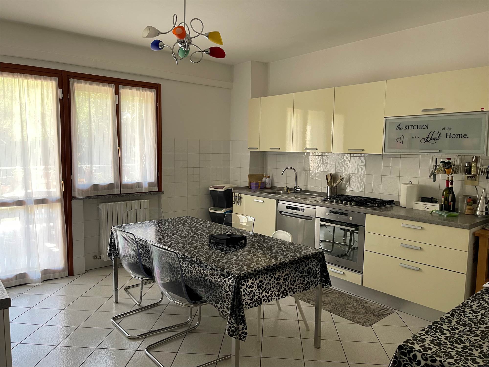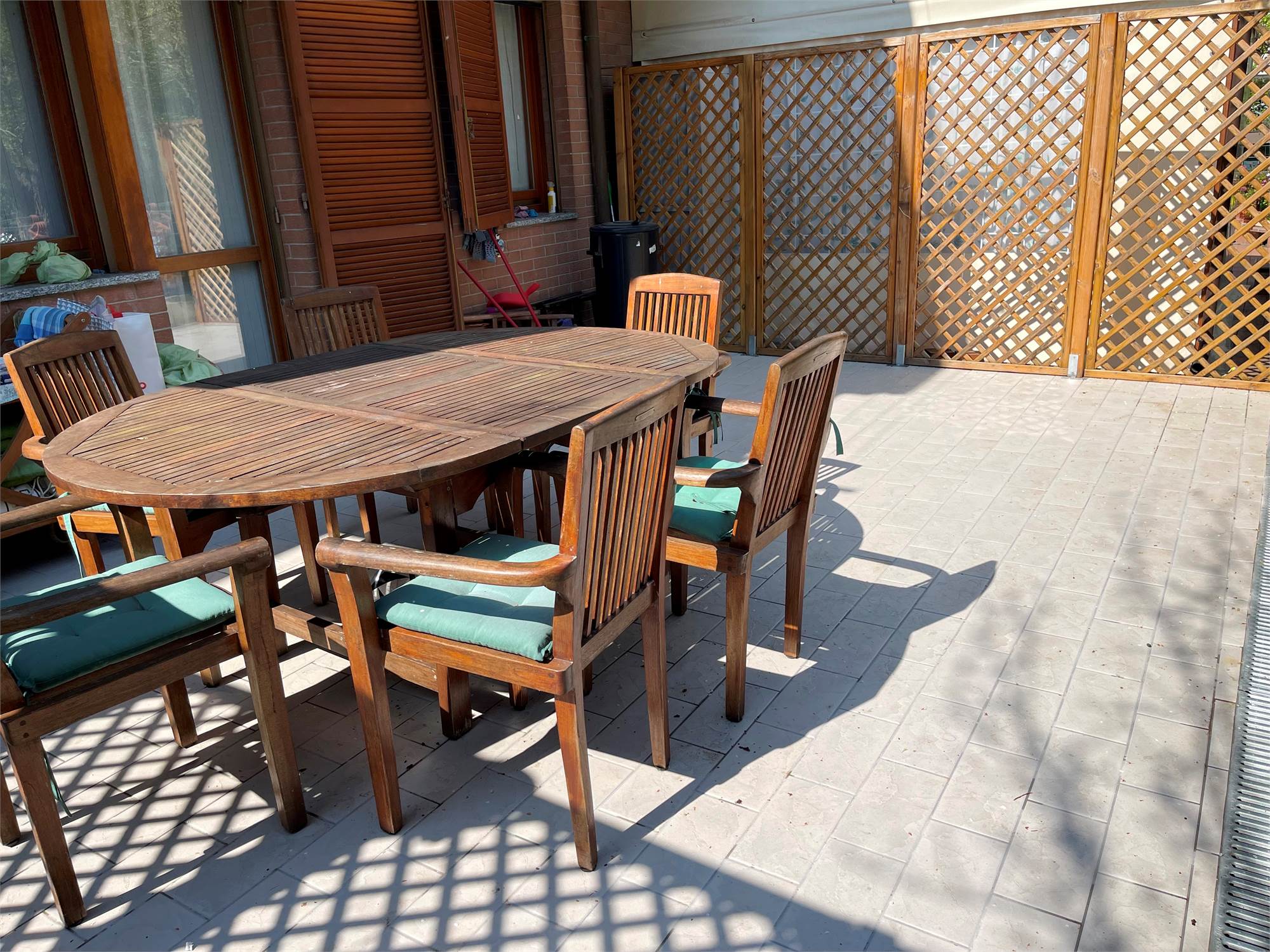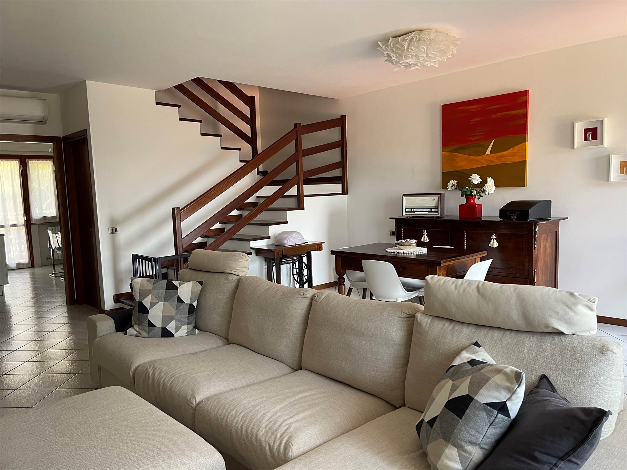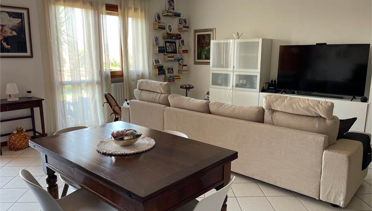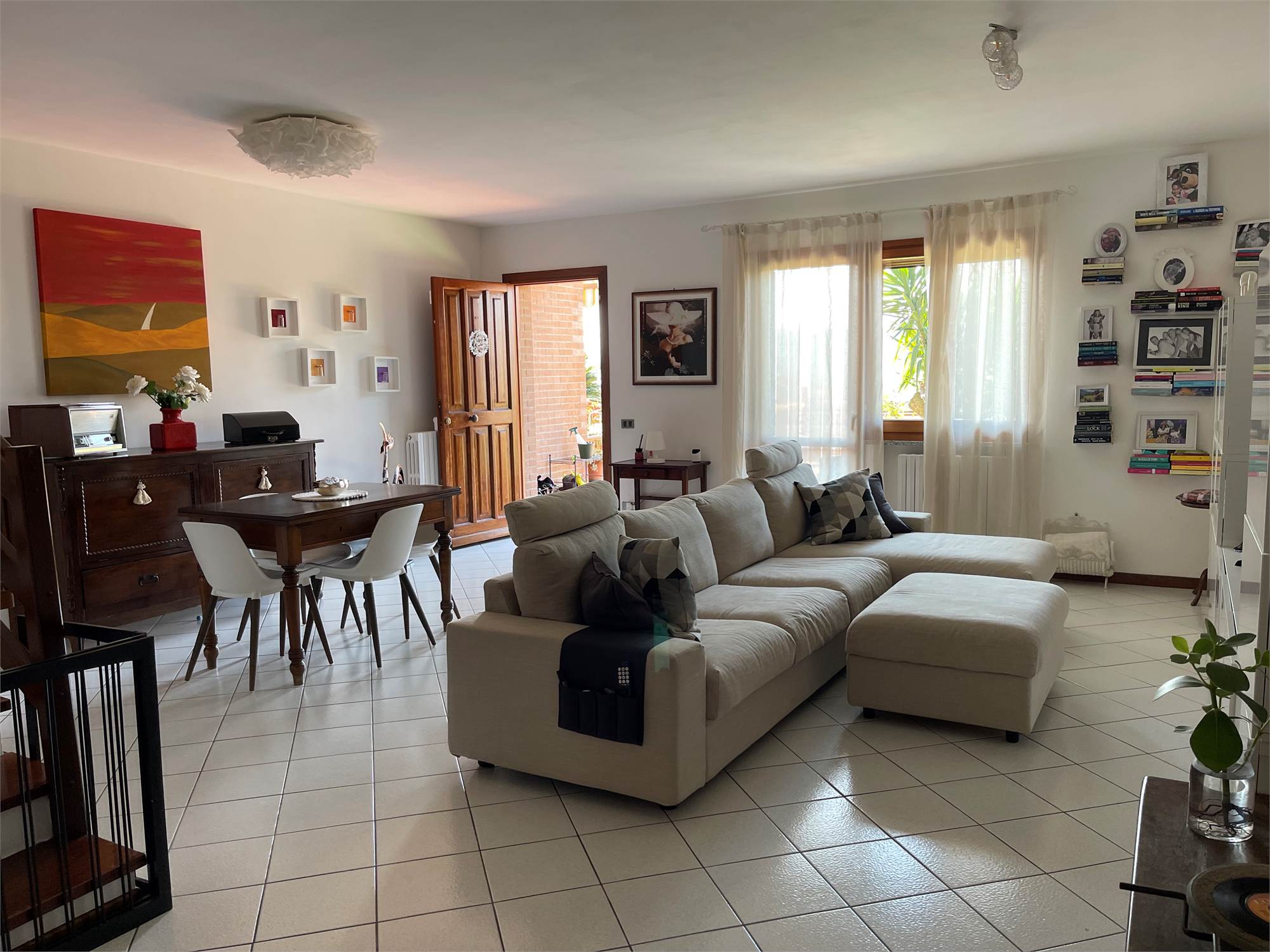 Ampio salone, collegato alla grande cucina con accesso alla corte pavimentata attrezzata dove trascorrere piacevoli momenti all'aria aperta.