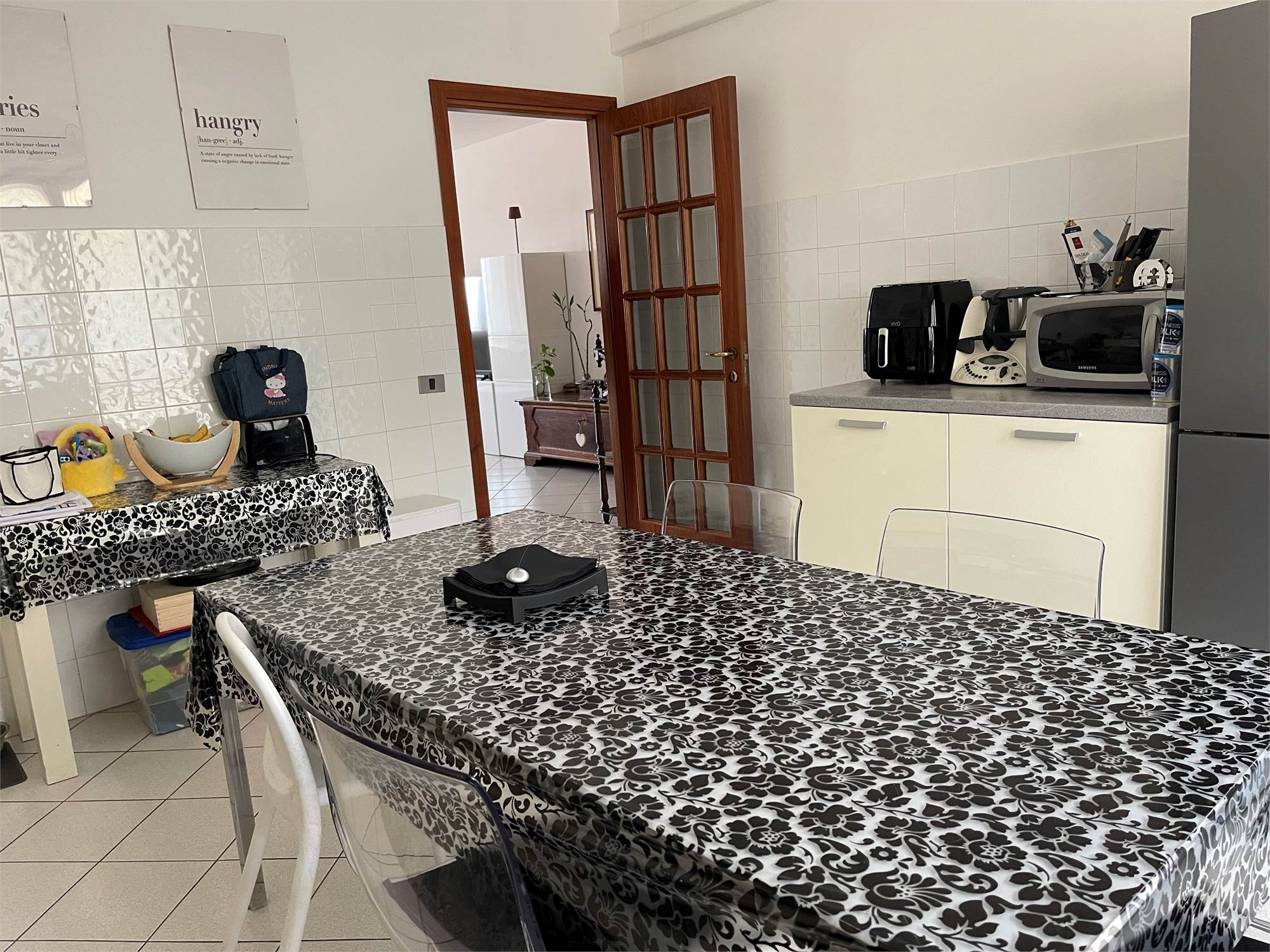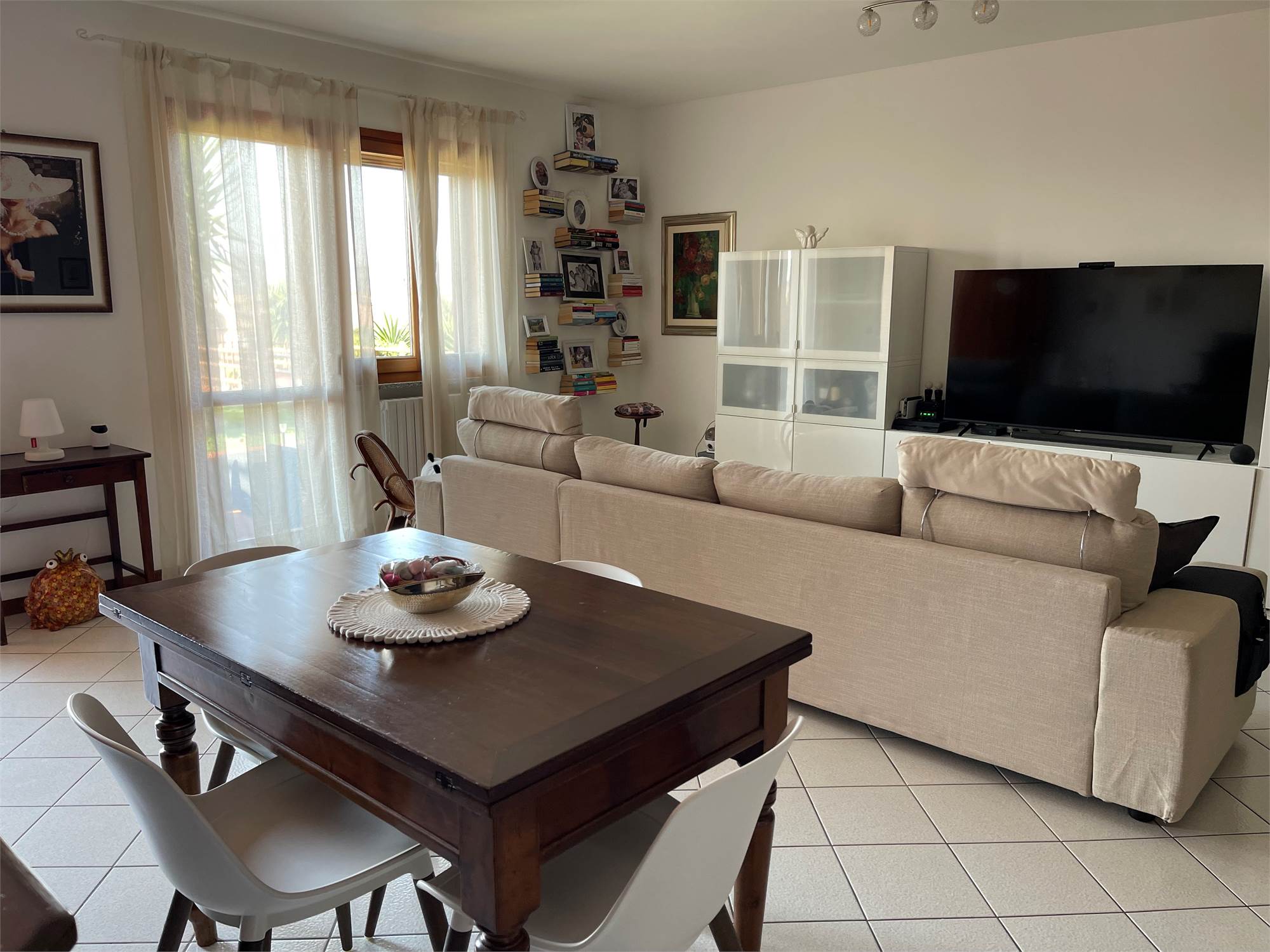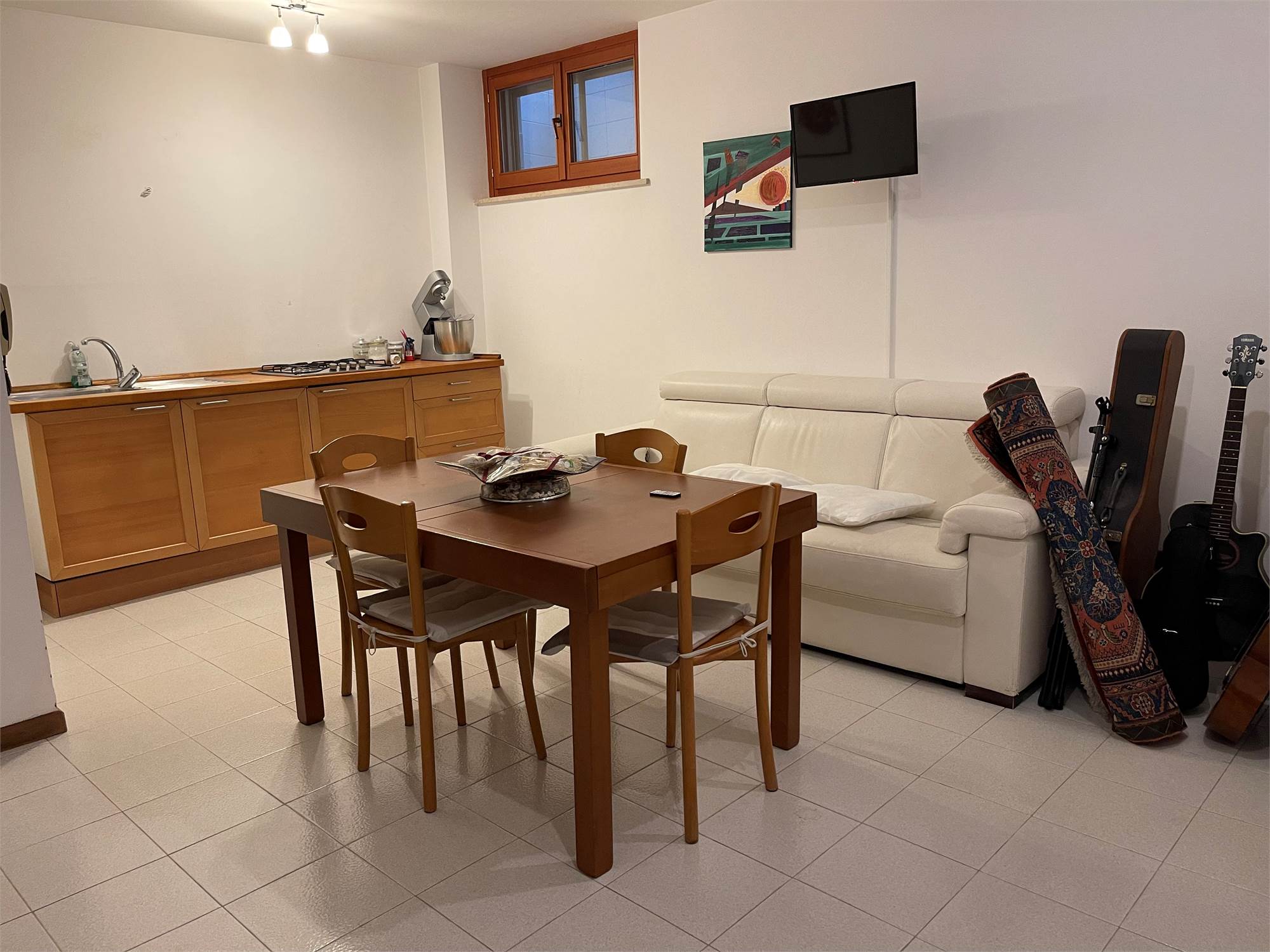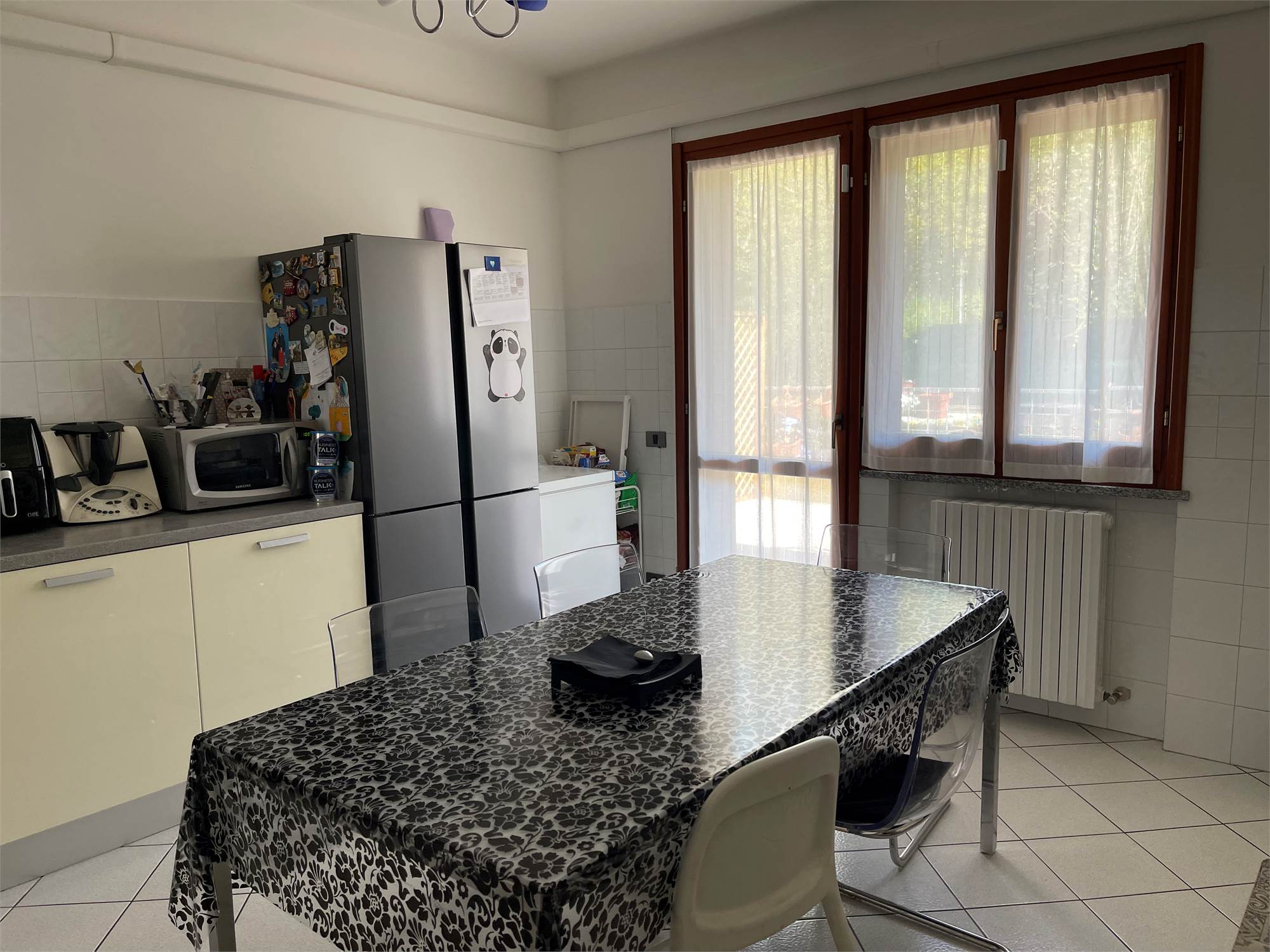 Ampio salone, collegato alla grande cucina con accesso alla corte pavimentata attrezzata dove trascorrere piacevoli momenti all'aria aperta.