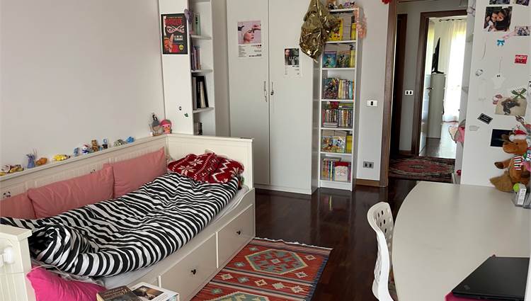 A completamento degli ampi spazi, troviamo una porta nella zona giorno che ci conduce al piano sottostante dove troviamo una taverna con caminetto, un bagno, un comodo ripostiglio, un garage doppio ed un posto auto riservato nel tunnel condominiale.
