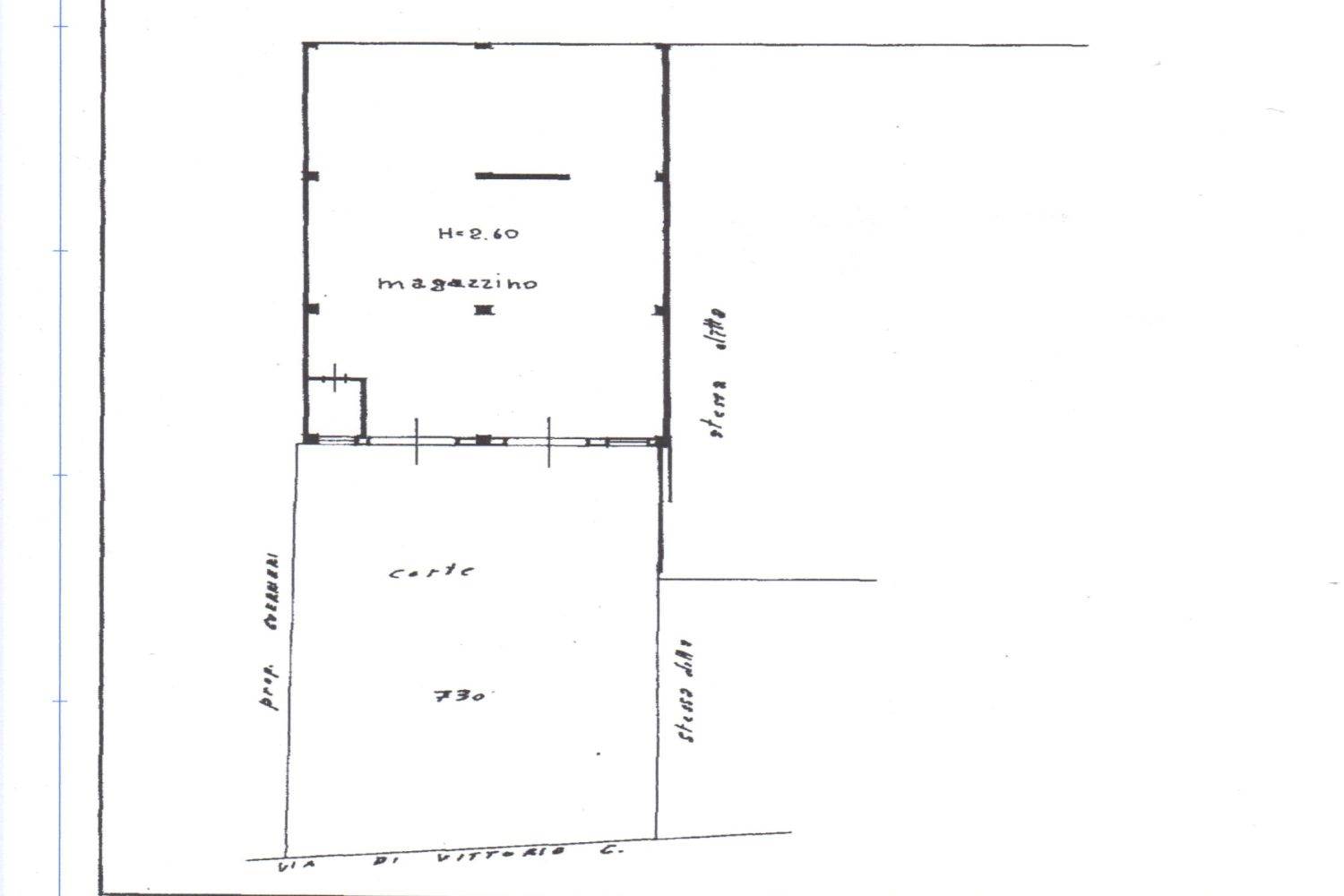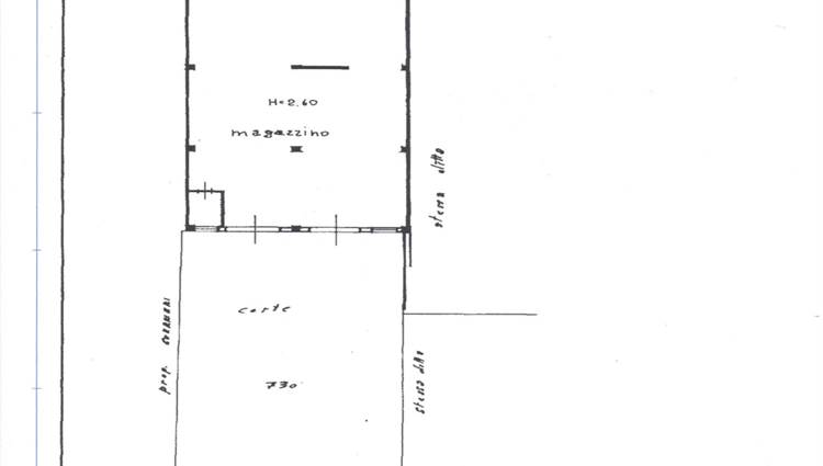 Il magazzino dispone di n. 2 vani oltre al servizio, situato al piano terra, con corte antistante di 200 mq., il che lo rende comodo e accessibile per l'immagazzinamento ed il carico e scarico di merci e altri beni.