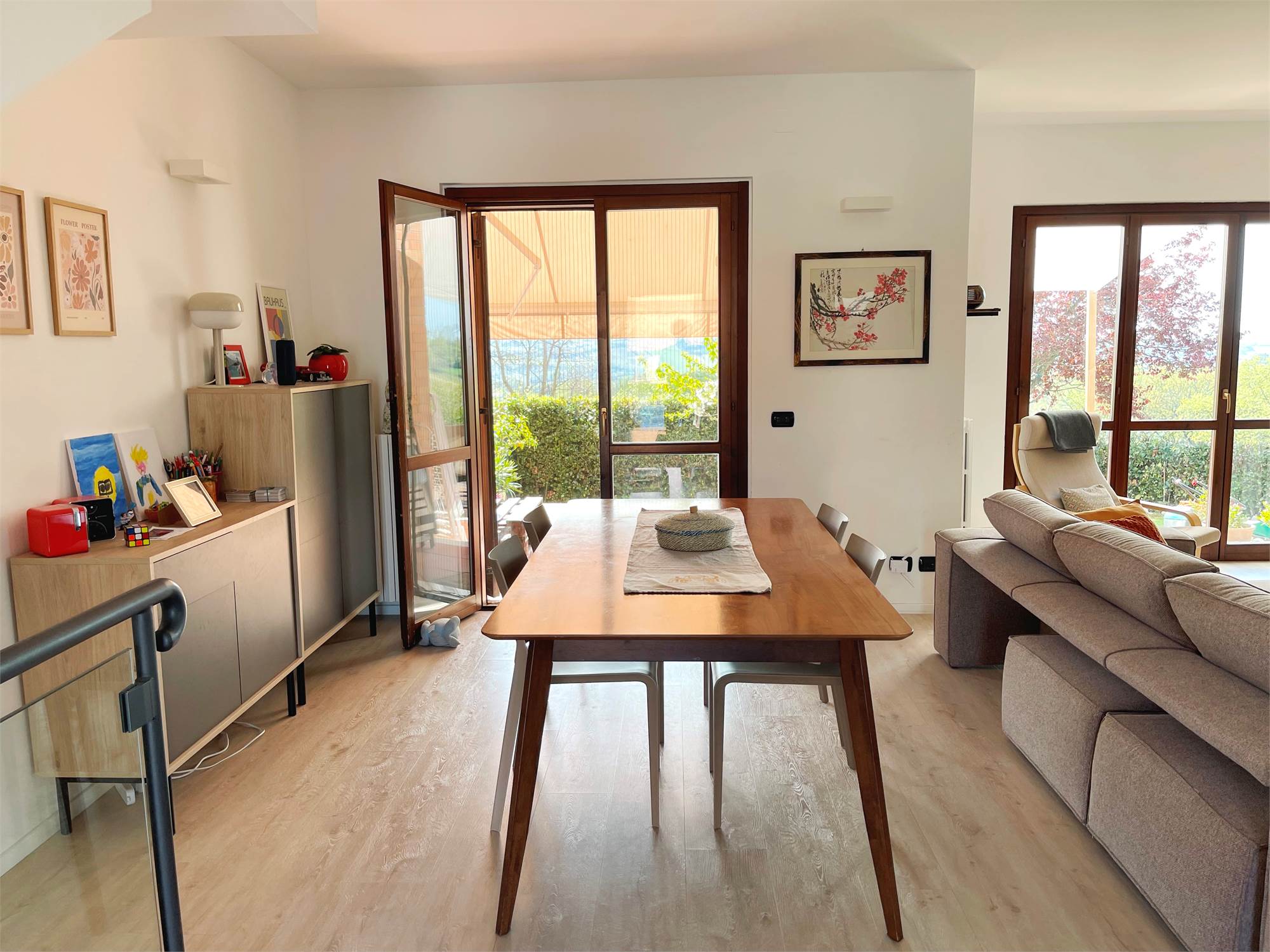 ✔️ Ampia zona giorno luminosa con vetrate sul verde